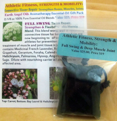 FULL SWING aka Hernia Mend (Tissue Repair, Strengthen, Increase Flexibility): This blend works well for rebuilding connective tissue in hernias, and we now offer the blend to athletes for prevention and natural treatment of muscle & joint tissue injuries.