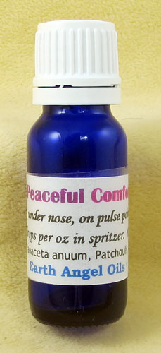 Energetic Benefits: Peaceful Comfort blend increases the overall flow of energy throughout all the meridians, breaks up obsessive patterns, and increases circulation on all levels. - Star Johnsen-Moser, Intuitive Energetic Healer.