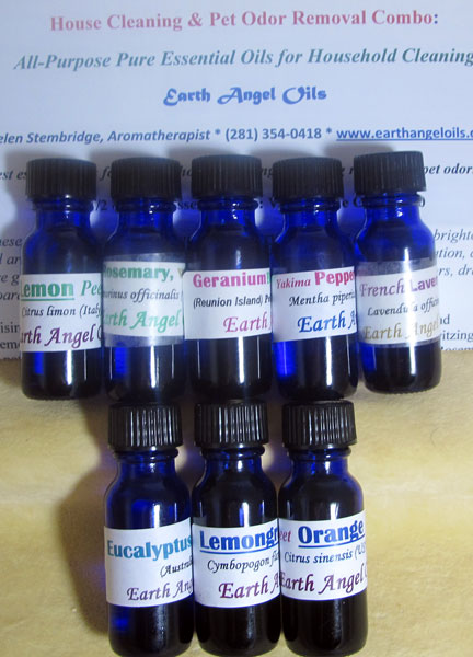 These are the seven most effective essential oils for cleaning & refreshing kitchen/living areas and removing cat & dog odors. Eucalyptus, Geranium, Lavender, Lemon, Lemongrass, Sweet Orange, Peppermint, Rosemary.