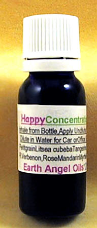 Energetic Benefits:Happy Concentration essential oil blend brings spiritual energy into the Third Eye, the mastoid area of the ear, & the retina of the eye – going all through the mouth, sinuses, & center of the brain, connecting us to our finer levels of the senses. - Star Johnsen-Moser, Intuitive Energetic Healer.